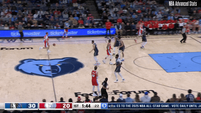 To be clear, he’s not dunking on heads: JJJ’s 3.4% dunk rate is lower than teammates like Santi Aldama (8.2%), 3-and-D rookie Jaylen Wells (3.8%), and 6’4” shooting guard Vince Williams Jr. (4.7%). But he’s not trying to get that close anyway. Jackson frolics in the paint, dancing around the midrange until he finds an angle to gently loft the ball rimward with one hand. Jackson leads the league in percentage of shots taken from the short midrange, which is usually an inefficient area of the floor to shoot from. Not for this Bear.